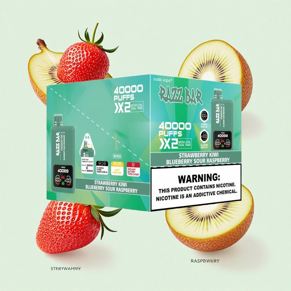 Jagoda Kivi_Plava Borovnica Kisela Malina Razz Bar 40000 Puffs Jednokratna Vape s Power Screen Display i 1.0Ohm 2 Mesh Coil